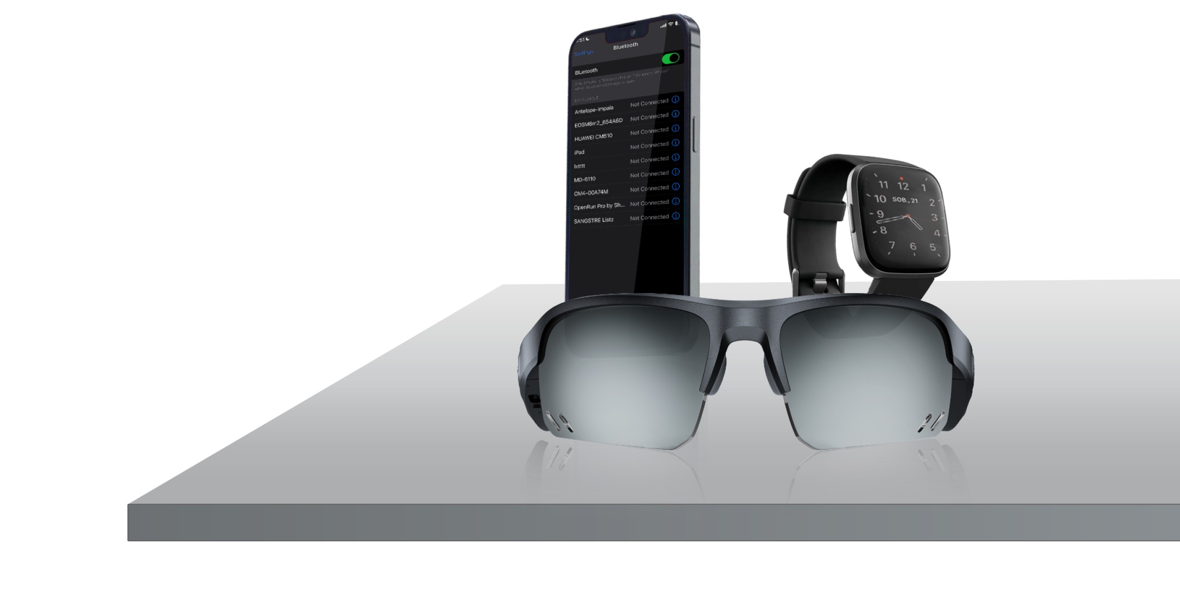 二つのデバイスへの同時接続をサポートしており、メガネのスイッチボタンをクリックすることで、 音源を自由に切り替えることができます。スマートフォン、タブレット、Android/iOS/Windowsオペレ ーティングシステムを搭載したその他のデバイスと互換性があります。